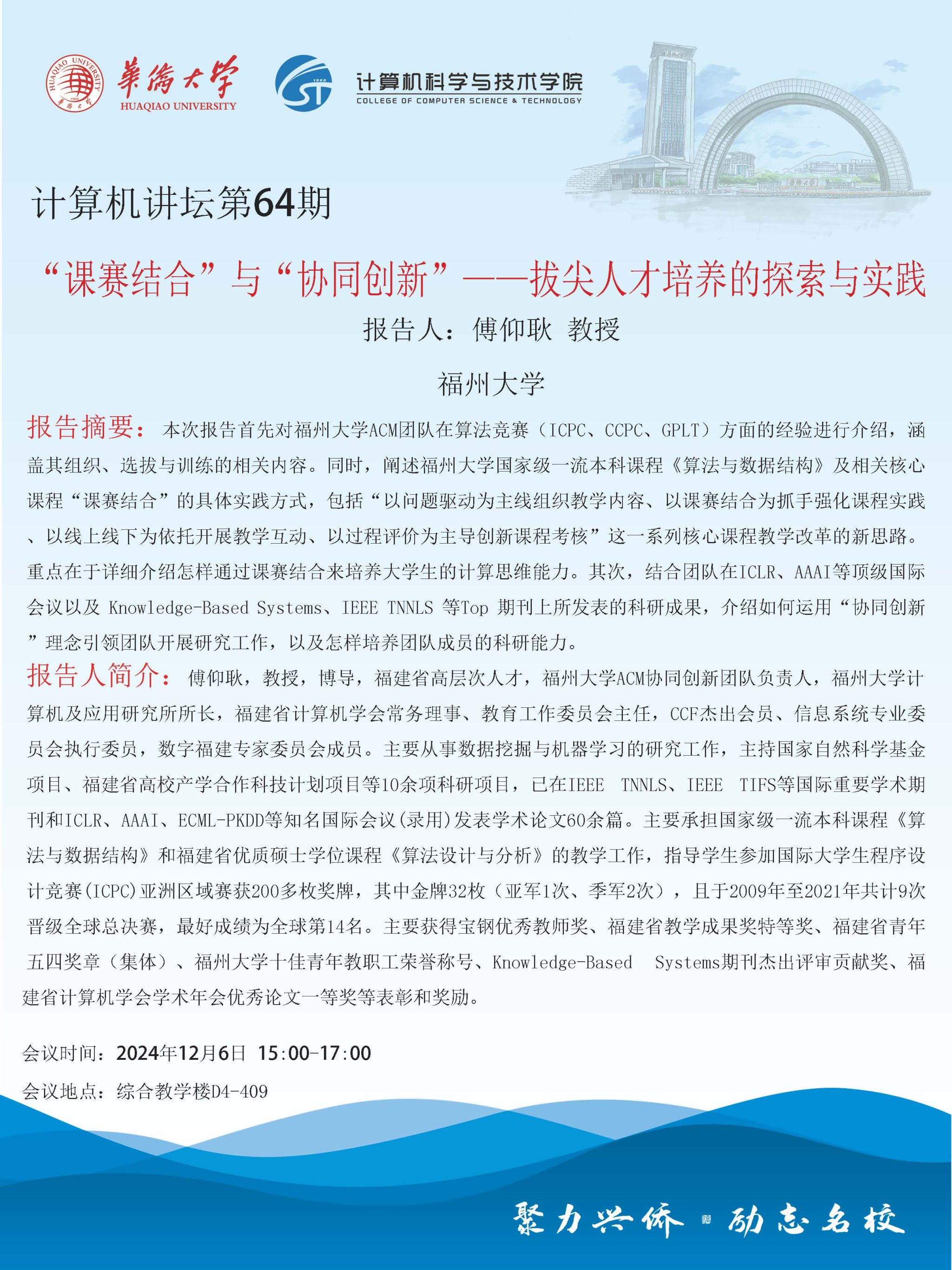 【计算机讲坛】预告:“课赛结合”与“协同创新拔尖人才培养的探索与实践