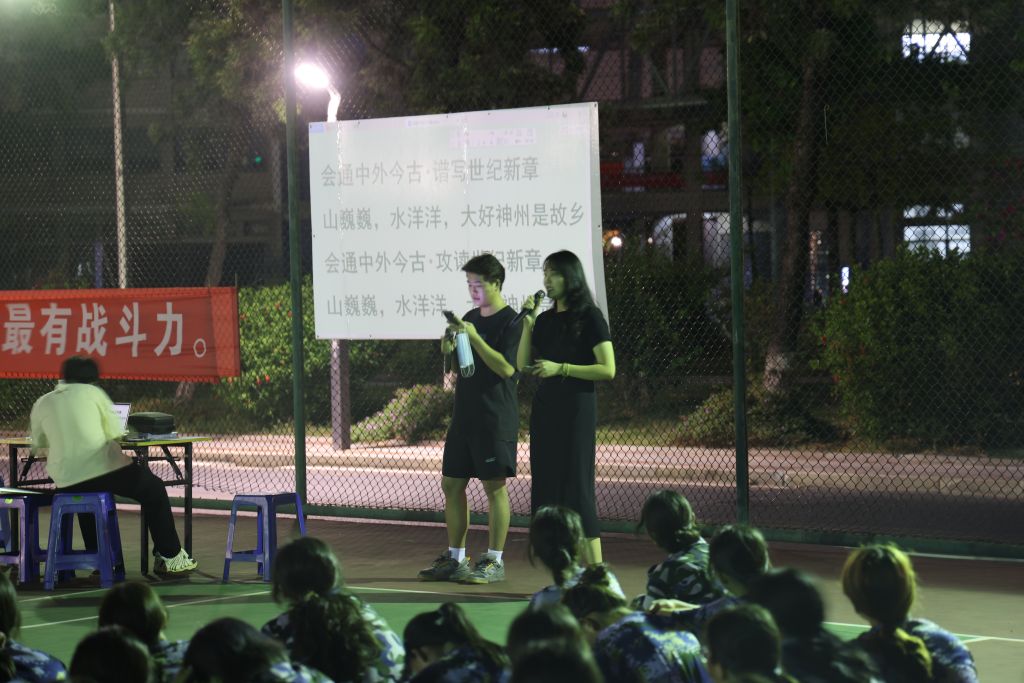 9月10日,永利集团官网2022级新生军训正在进行中。今年的教师节撞上了中秋节,为迎接二十大、欢庆双节,同时加强对学生的爱国主义教育,永利集团88304官网和旅游学院新生组成的三连,在排球场联合举办中秋晚会暨退伍大学生士兵分享交流会。400余名新生和部分教师、老生参加。